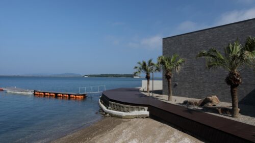 「Lentement suite-villa AWAJI」は、1日1組限定のハウスヴィラで、プライベートビーチや独立型サウナルーム、高級システムキッチンなど、ハイクオリティの設備が整っています。