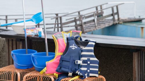 宿泊者は無料で入場できるプライベート釣り桟橋では、釣りセットや単品アイテムの有料サービス、子ども用ライフジャケットの無料レンタルといったサポートも充実!