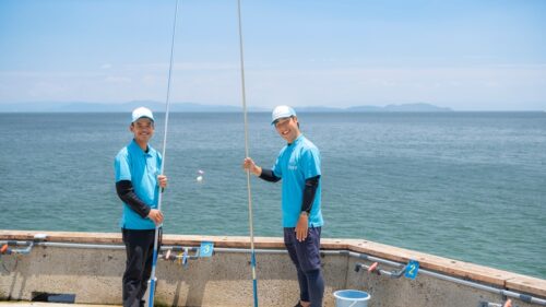 「洲本温泉 ホテルニューアワジ」では、プライベート桟橋でリールなしの延べ竿とオキアミを使った釣りが楽しめます。
