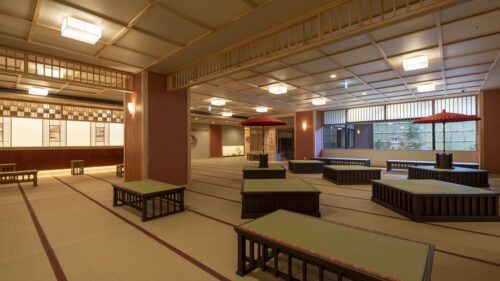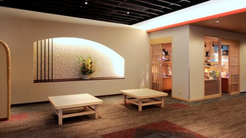 | ▶︎全館畳敷きになっていて、お迎え処・帳場・癒やし処なども広々としている |