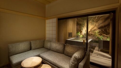 \露天風呂付き客室とゲストラウンジ/