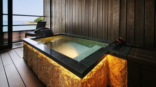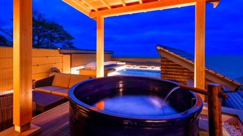 露天風呂では、美人の湯として名高い天然温泉「夕日ヶ浦温泉」や抜群のロケーションを堪能できて、美しい夕焼けや満天の星空を独り占め!