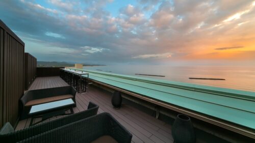 | ▶︎日本海に面した好立地にあり、ロケーション抜群の「天空のテラス」は絶景スポット |