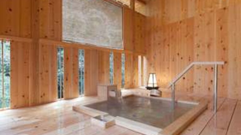 湯村温泉郷が一望できる展望桧風呂もおすすめで、壮大な景色と桧の香りでリラックス効果抜群!地下大浴場には「階段昇降機」が設置され、足が不自由な方でも昇り降りがしやすくなっています。