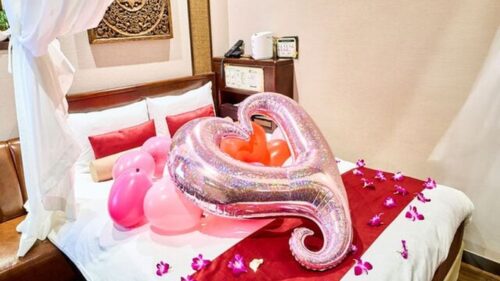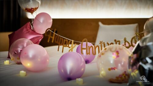 アニバーサリープランがあり、部屋にカラーバルーンや花束、メッセージカードなどで飾りつけをしてくれます。バルーンの色はお客様が選べるようになっています。