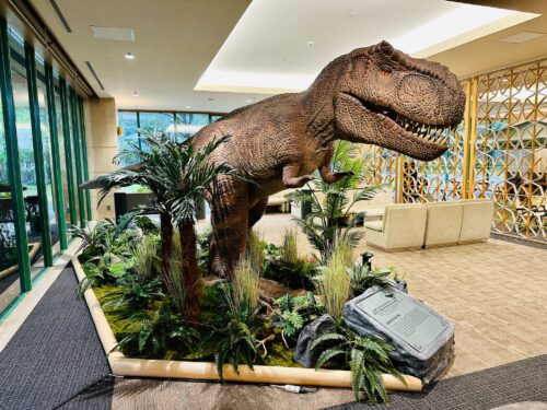 ホテルの中には大きな恐竜のオブジェがあり、見ているだけでもワクワクします。