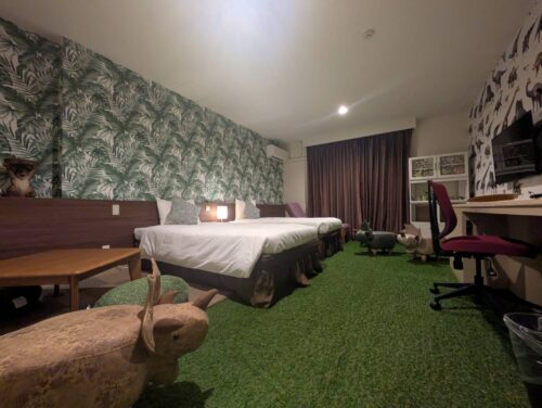 客室に恐竜の装飾があるホテルで子どもを喜ばせたい!