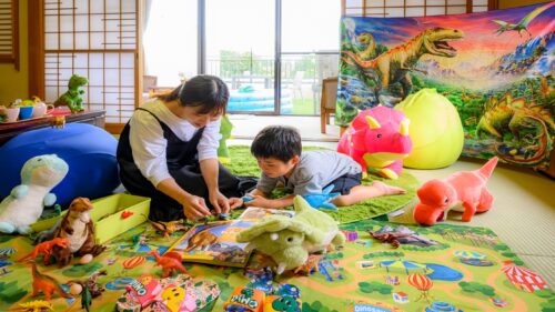 お部屋には恐竜グッズがたくさんあり、大人も子どもも遊べますね!