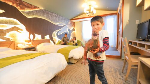 それぞれのホテルには、恐竜の部屋があったり、恐竜のお風呂やオブジェがあったりと、恐竜大好きっ子にぴったりの楽しいポイントがいっぱいです。