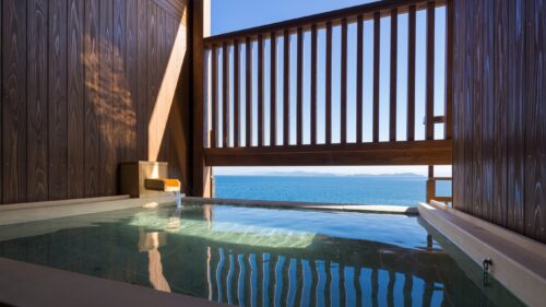 客室は、和を基調としたロケーション抜群の「夢大地」と全室露天風呂つきのスイートルーム「ヴィラ楽園」の2タイプ。