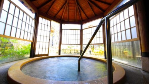 | ▶︎徒歩1分の場所に中津温泉「あやめの湯」があり、絶景露天風呂を堪能できる |