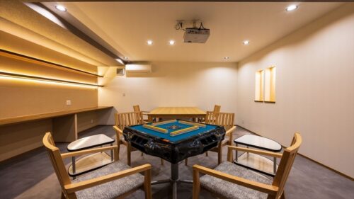 大人数での滞在におすすめ!麻雀もポーカーも楽しめるプレイルームで、気兼ねなく仲間と盛り上がれますね。