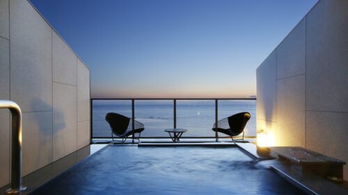 まるで海に浮いているかのように、海を間近に見ながら露天風呂につかることができます。