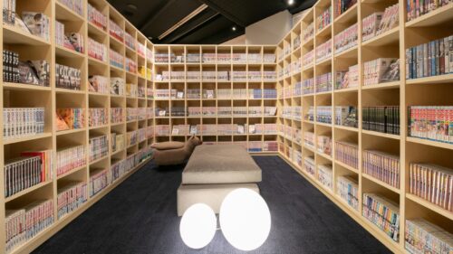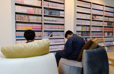 ラウンジ内には MANGA Libraryがあり、約10,000冊の漫画が並んでいます。