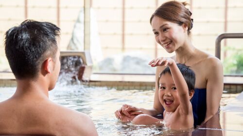 「ウェルカムベビーの宿」に認定されていて、おむつ用ゴミ箱や補助便座、子ども用浴衣なども完備。0〜1歳までは添い寝無料で、幼児向けメニューも用意されているのも嬉しいポイントです。