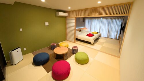 和室のお部屋があるので、おふとんでゴロゴロできて安心。最大10人まで泊まれる広いお部屋もあり、三世代旅行にもぴったり!添い寝は未就学の子どもなら無料です。
