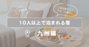 ちなみに、三世代旅行や複数家族での旅行などで、大人数の旅行で泊まれるホテルを探している人は、こちらの「九州の10人以上で泊まれる温泉宿・ホテル13選」の記事もおすすめです!