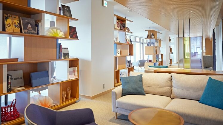 ▶︎宿泊者専用のゲストラウンジには、クラシック音楽が楽しめるリスニングルーム・静かに本が読めるリーディングルームが併設されている