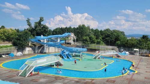 レジャープールには、2基のウォータースライダーをはじめ、1周120mの流れるプールや深さ40㎝の幼児向けプールが完備されています。