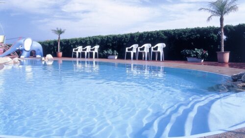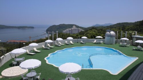 子ども向けのプール付きホテルを探している人におすすめなのは、夏季限定のシーサイドプールが併設されている「風待ちの湯 福寿荘」です。