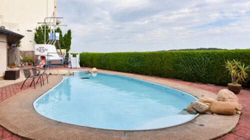 こちらの宿のシーサイドプールは、コンパクトサイズで子ども向けの浅いプールとなっているので、小さなお子さんも保護者同伴で水遊びが楽しめますよ。