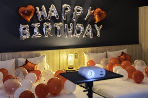 大画面プロジェクターで推しのライブや映画などを鑑賞しながら、お誕生日のお祝いもできる一石二鳥のホテル!