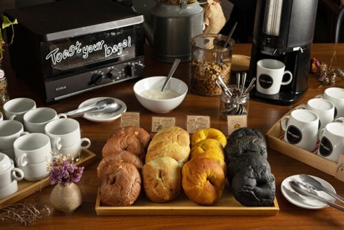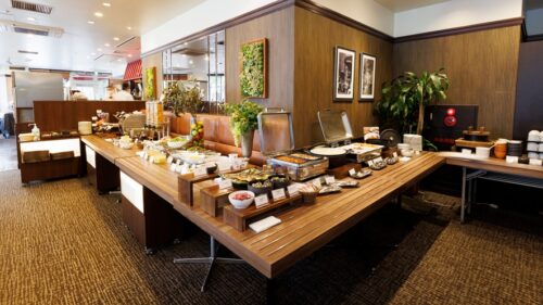| ▶︎焼きたてパンやご当地グルメ、オーガニックサラダといった朝食ビュッフェが、無料で味わえる |
