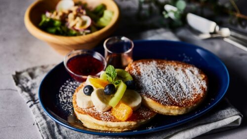 | ▶︎朝食つきプランでは、おしゃれカフェでパンケーキやエッグベネディクト、野菜サラダなどのモーニングプレートが楽しめる |