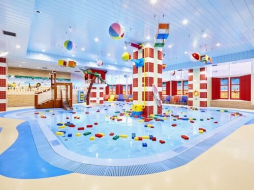 レゴブロックの温水プールや、遊び場併設のレストランもあり、子どもが存分に楽しめるポイント満載です。