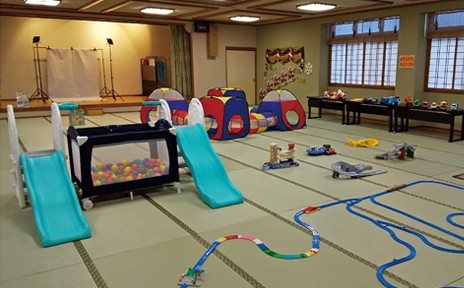館内には、畳のキッズスペースがあり、子どもが遊具で遊ぶこともできます。