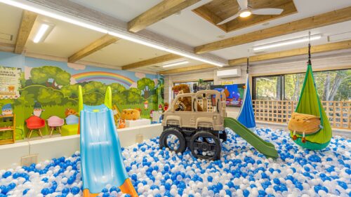 「ウェルカムベビーの宿」に認定されていて、ボールプールやサンゴをイメージしたボルダリングがあるキッズスペースも完備!