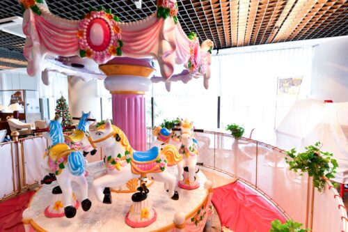オールシーズン入れるプールや、キッズルーム、メリーゴーランド、プラレールなど、子ども向けのアクティビティが充実しています。